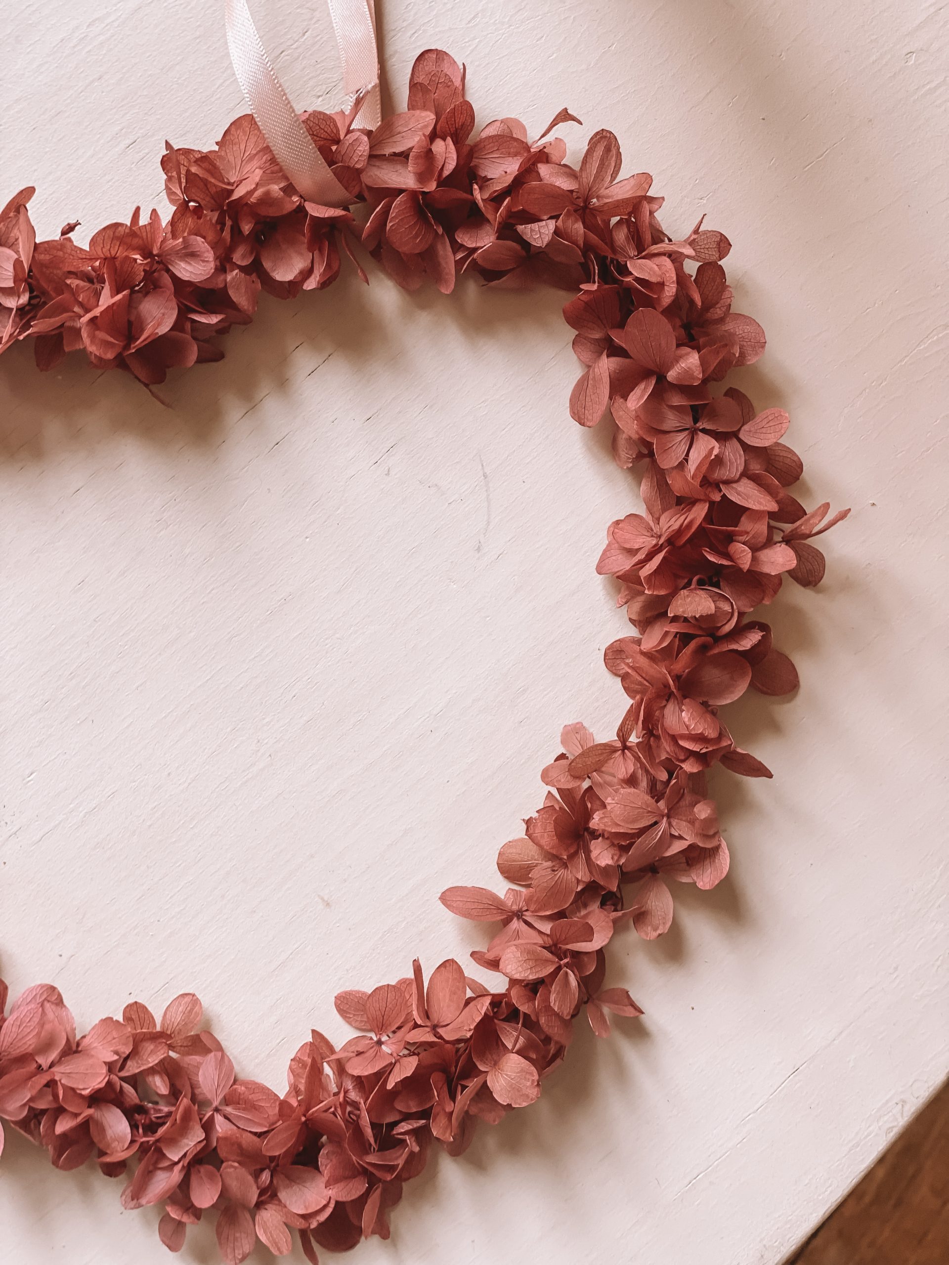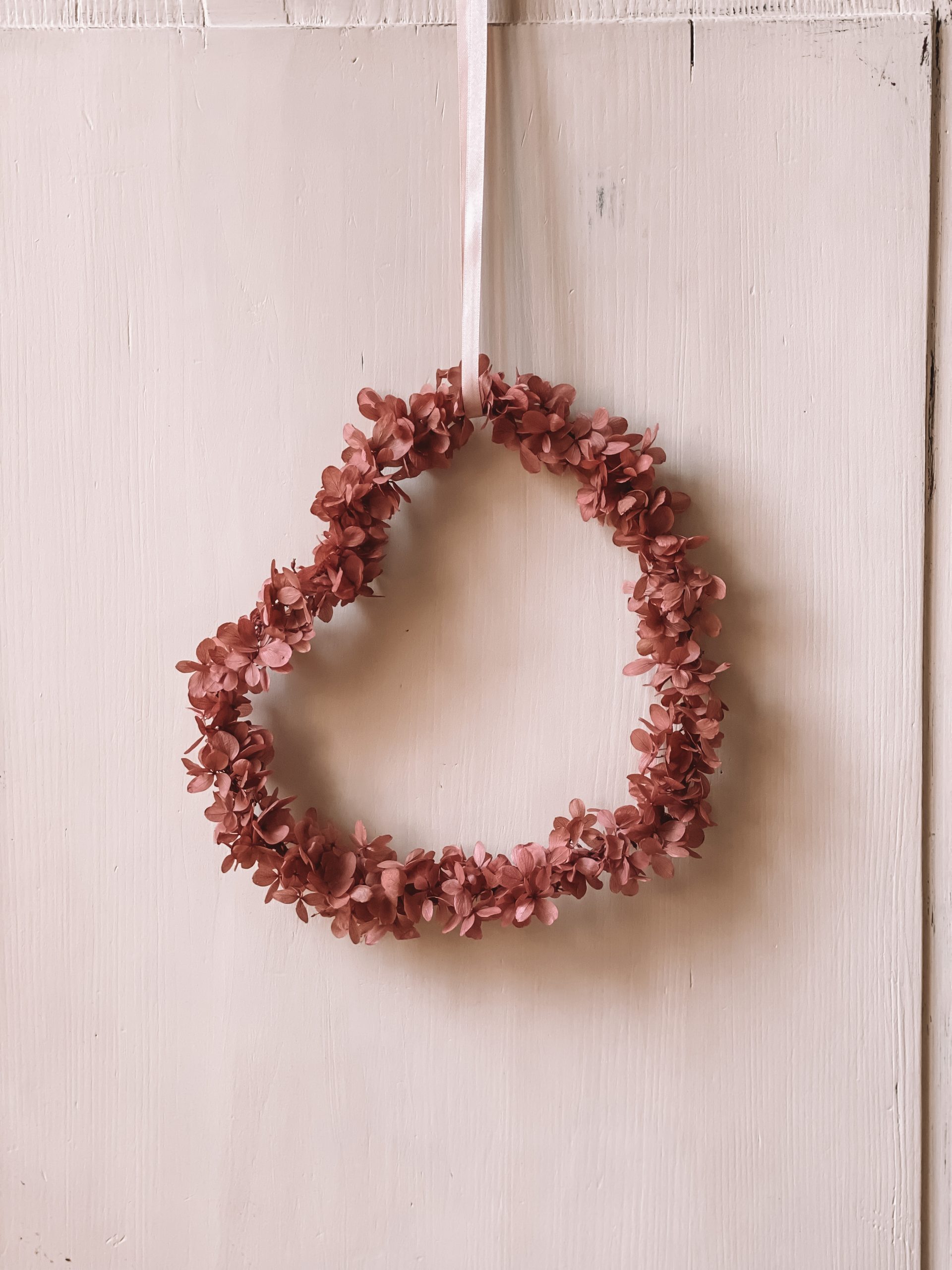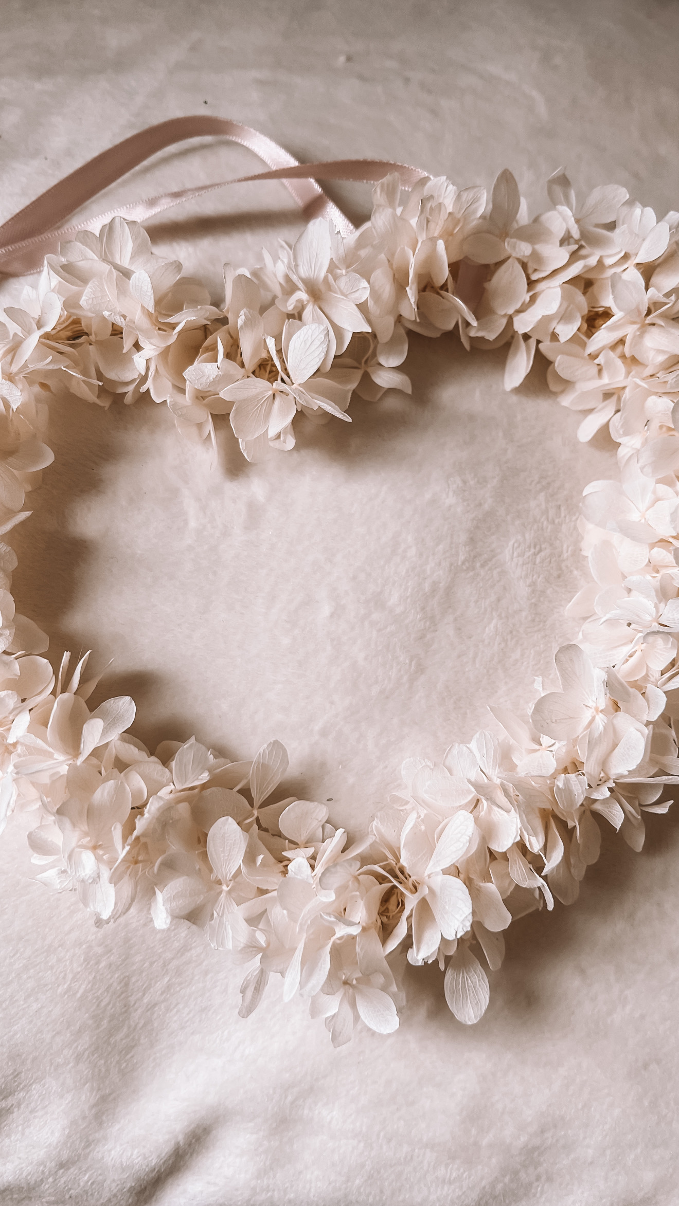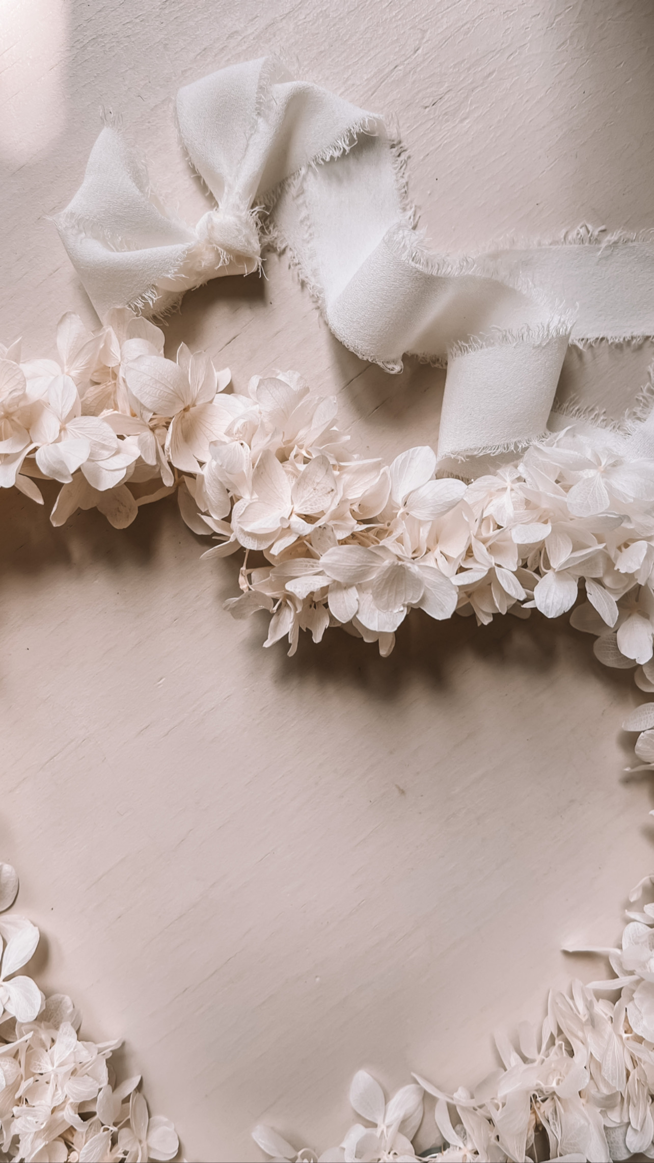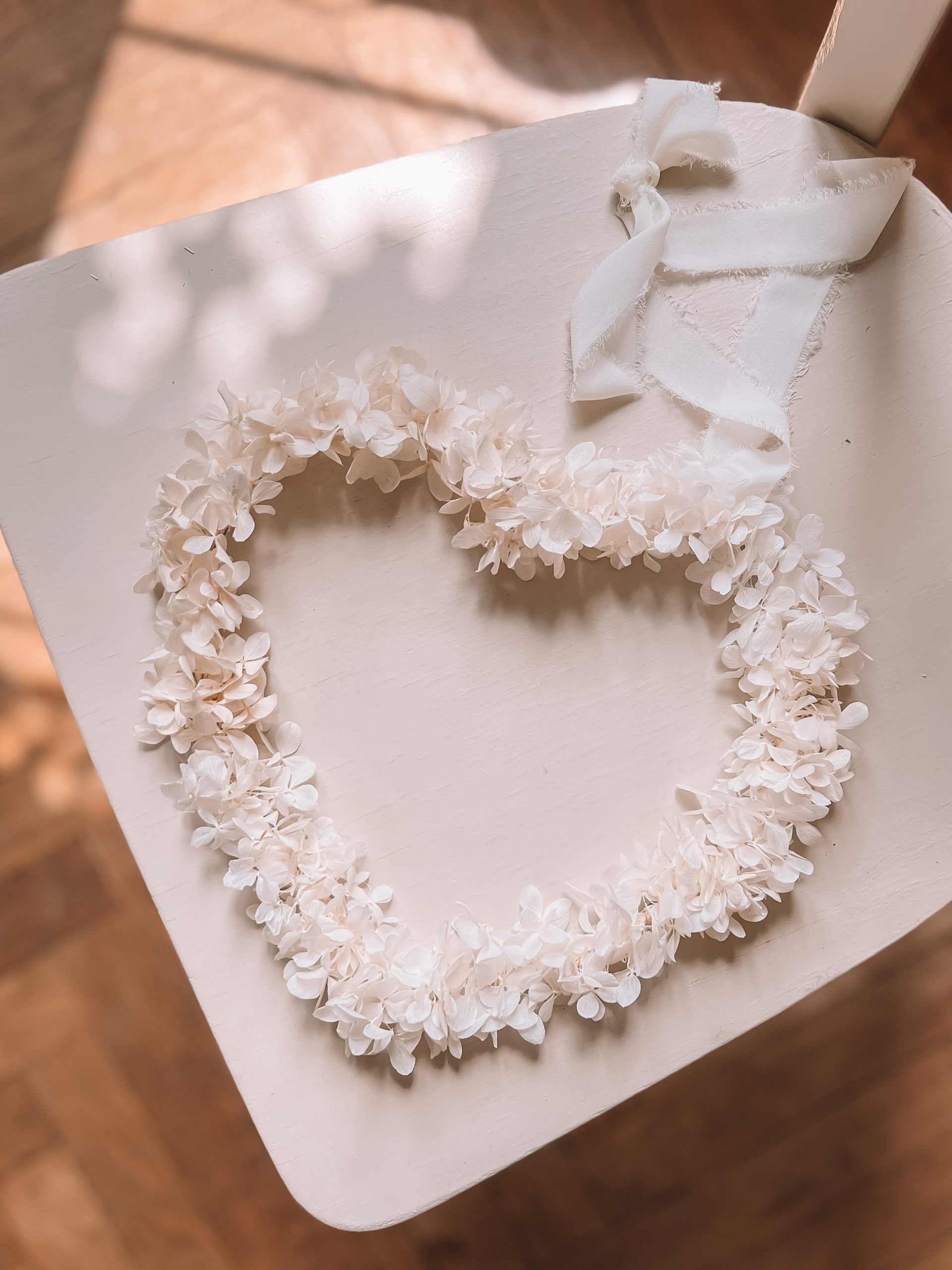 Offrez ou offrez-vous un tendre symbole d’amour et de délicatesse avec ce magnifique cœur composé de pétales d’hortensia stabilisés, disponibles en rose, blanc et bois de rose.